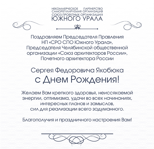 Поздравляем Сергея Федоровича Якобюка с Днем Рождения!