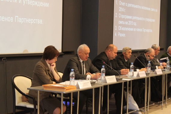 По первому и второму вопросам повестки дня с докладами «Об отчете о деятельности и исполнении сметы за 2014 год» и «О программе деятельности Партнерства и утверждении сметы на 2015 год» выступил Председатель Правления.