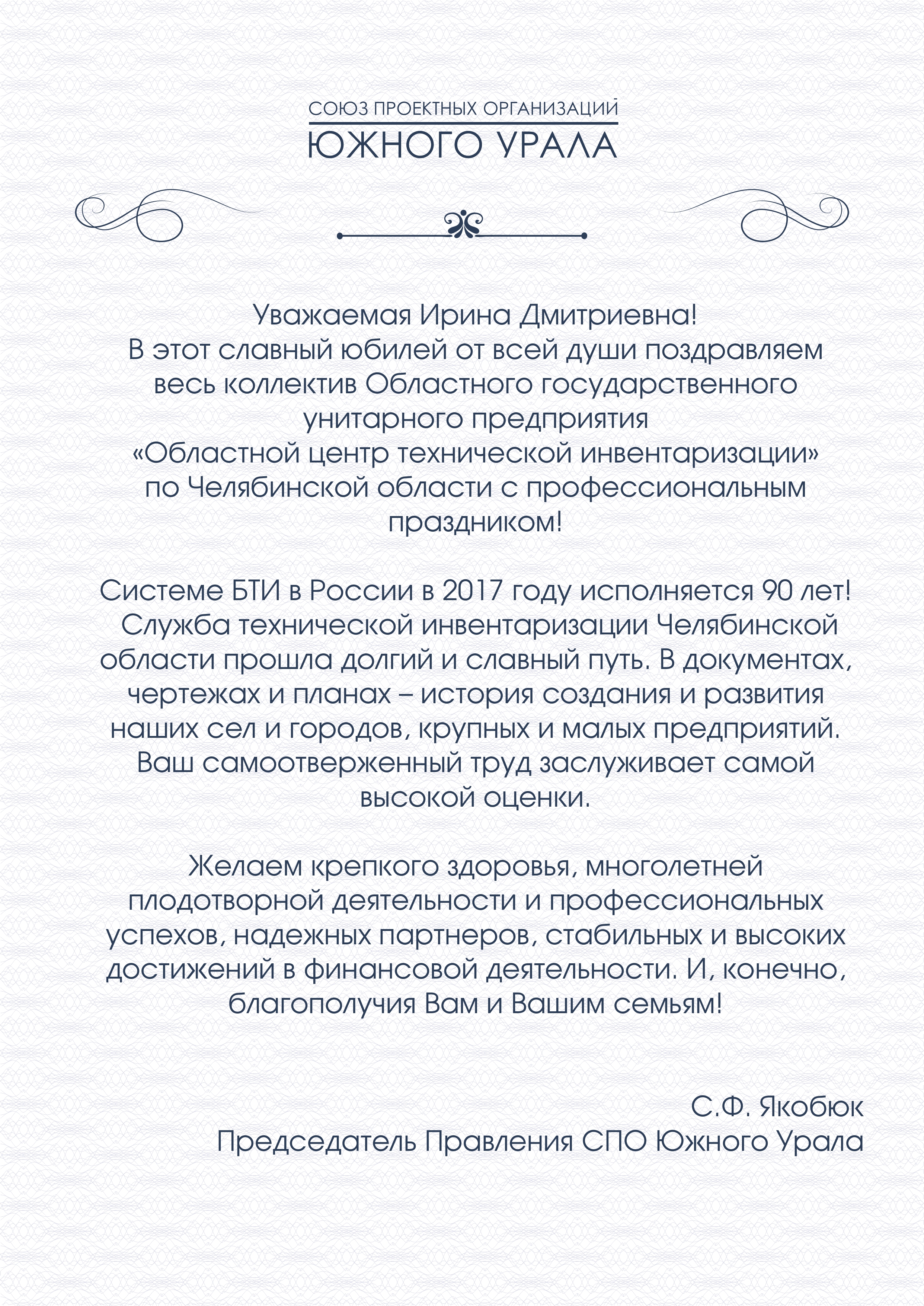 Поздравляем ОГУП ОблЦТИ по Челябинской области