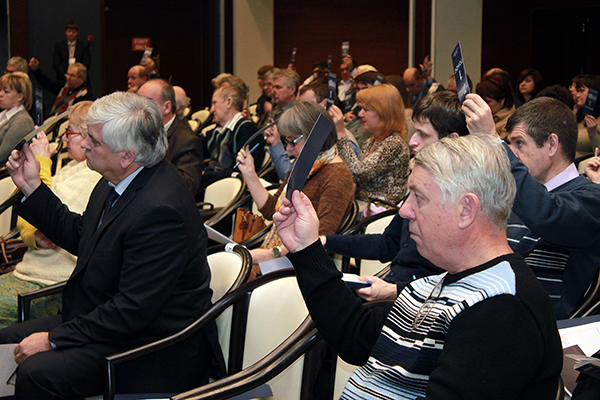 Путем открытого голосования делегаты утвердили повестку дня и приступили к работе.