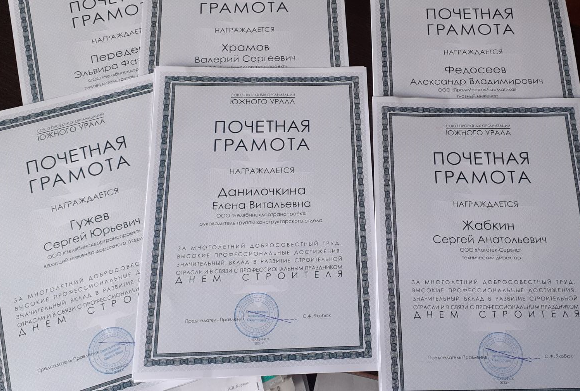 В преддверии приближающегося празднования Дня строителя Правлением и Исполнительной дирекцией СПО Южного Урала было рассмотрено больше 40 ходатайств на награждение Почётными грамотами и благодарственными письмами.