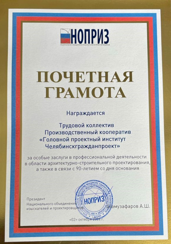 10 октября 2024 года один из ведущих проектных институтов, базовая территориальная проектная организация в области строительства, архитектуры и градостроительства в строительной отрасли Челябинской области ПК Головной проектный институт «Челябинскгражданпроект» отмечает 90 - летний юбилей!