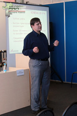 Во второй половине дня состоялся специализированный семинар на тему «Современные технологии проектирования» для проектировщиков, главных инженеров и конструкторов. Открыла семинар директор ООО РЦ «АСКОН-Урал» Е.В. Каблова и тему применения современных информационных технологий при проектирования продолжил Д.А. Пичуев – менеджер по автоматизации строительного проектирования ООО РЦ «АСКОН-Урал». Гостям был презентован проект «Компас-3D», так называемая «универсальная система трехмерного моделирования», технология которой позволяет быстро получать модели типовых элементов на основе однажды спроектированного прототипа, а также проект «Лоцман», автоматизирующий процесс документооборота.