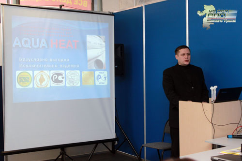 Семинар завершил Д. В. Столбов (ООО УК «МПТ»), рассказав о преимуществах применения многослойных труб и фитингов AQUAHEAT, как при проектировании высокотемпературных систем отопления, так и при эксплуатации зданий. Одним из важных сообщений доклада стало то, что включая в проект данную продукцию можно не только сократить сроки монтажа, но и значительно снизить денежные затраты.